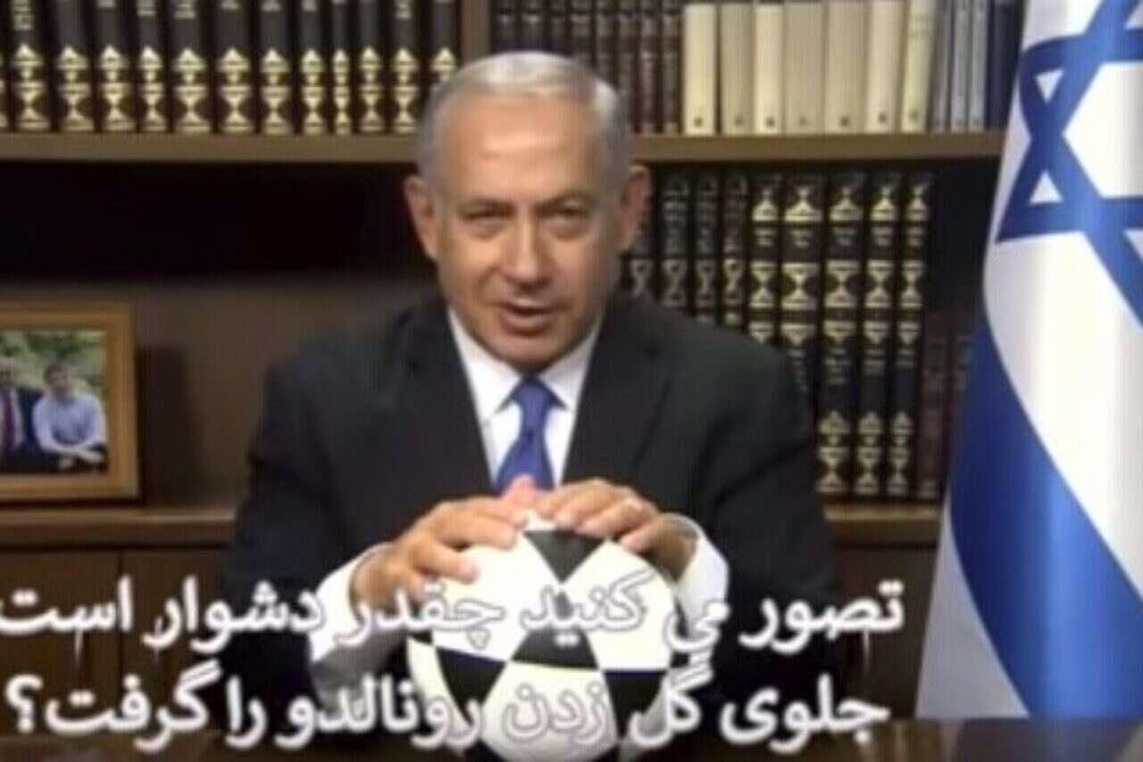 "אתם יכולים לתאר לעצמכם כמה זה קשה לעצור את רונאלדו מלכבוש? אני שיחקתי כדורגל, זה כמעט בלתי אפשרי. הנבחרת האיראנית עשתה זאת. הפגנתם אומץ על המגרש", אמר נתניהו בהתייחס ל- 1:1 המפתיע שהשיגה הנבחרת מול פורטוגל של כריסטיאנו רונאלדו במסגרת המונדיאל.