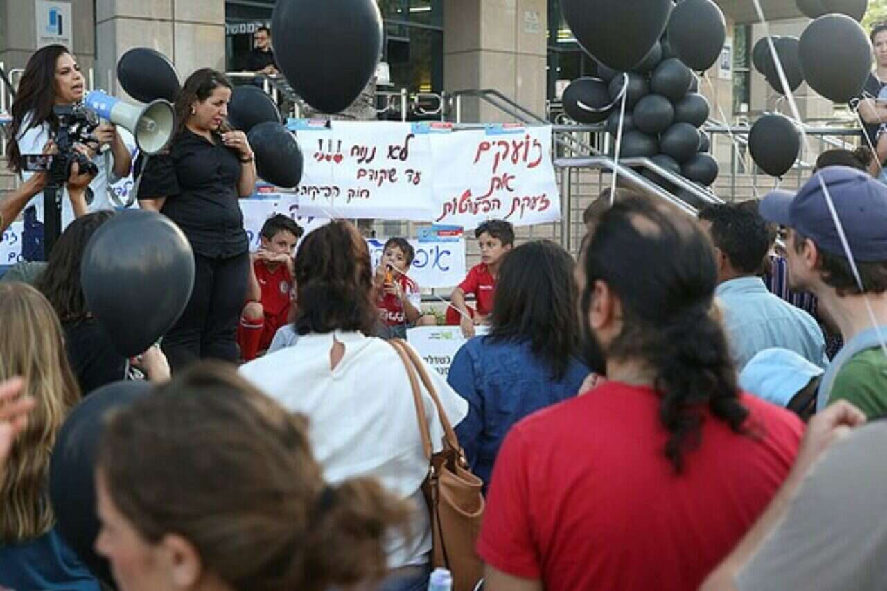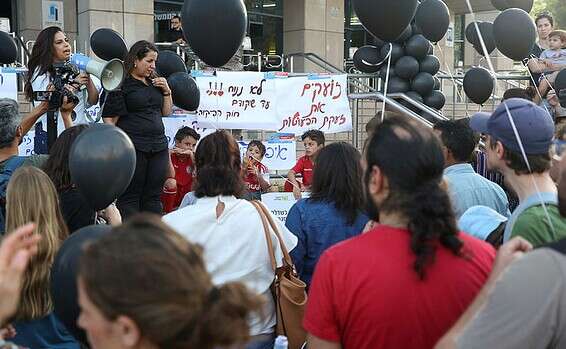 הורים מפגינים ברמת גן נגד התעללות של גננת באחת הפעוטות החודש // צילום: פז בר, יהודה שלזינגר