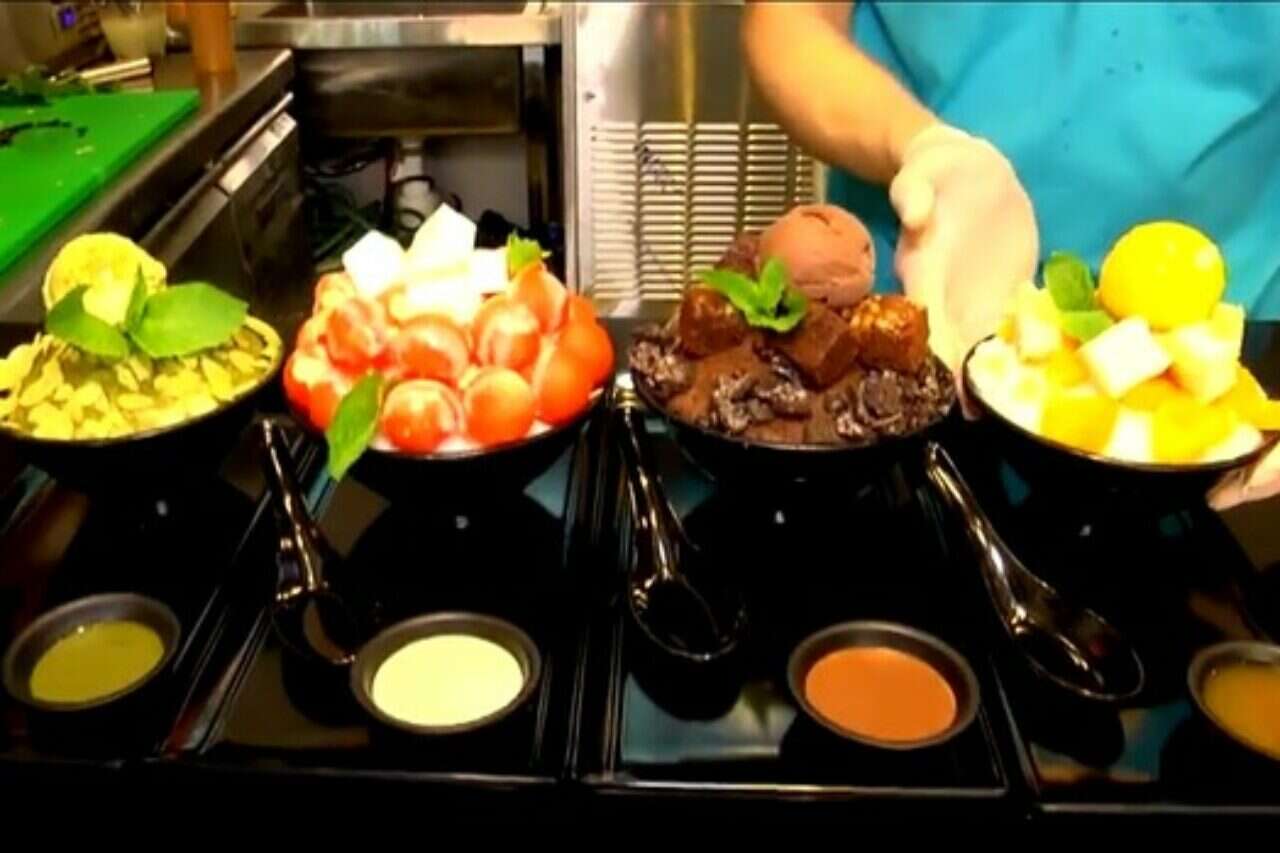 בביקור בחנות ניתן לראות את העובדים הקוריאנים שהגיעו במיוחד כדי להכין את המנות המדויקות, ממש כמו בסניפים הראשונים בסיאול, את הניקיון ואת המכונה המיוחדת שמייצרת שלג בצבעים וטעמים שונים.