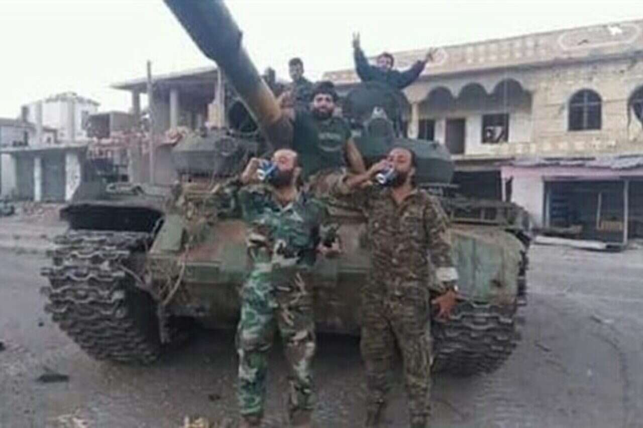 בתמונות שפורסמו נראה מפקד המיליציה בסוריה, עיראקי המוכר בכינוי "אבו שהד", לבוש במדי המיליציה ולא במדי הצבא הסורי, כשהוא ניצב סמוך לרכב מחורר בכדורים שהיה שייך לכוחות המורדי םבעיירה שנכבשה. בשאר הצילומים נראים לוחמי המיליציה כשהם חוגגים, שותים משקאות קלים ועומדים לצד טנקים וכלי רכב משוריינים שנפלו שלל לידי הלוחמים.
