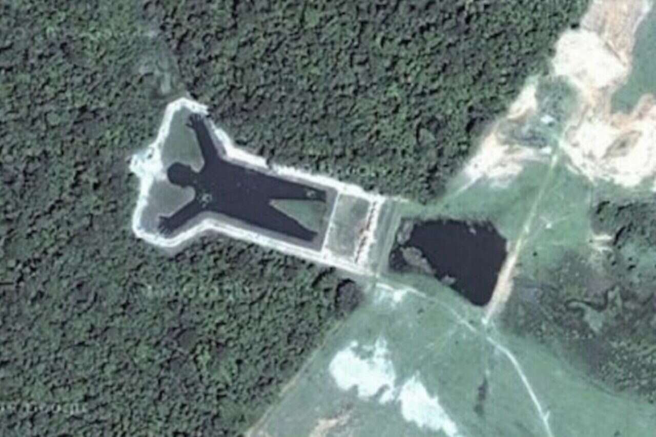 צילום: google maps // ציור ענק של אדם באגם ליד סאו פאולו בברזיל