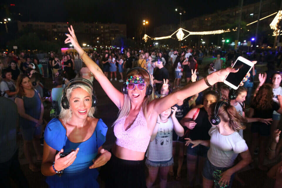 חוגגים במסיבת אוזניות בכיכר רבין // צילום: יהושע יוסף // חוגגים במסיבת אוזניות בכיכר רבין // צילום: יהושע יוסף