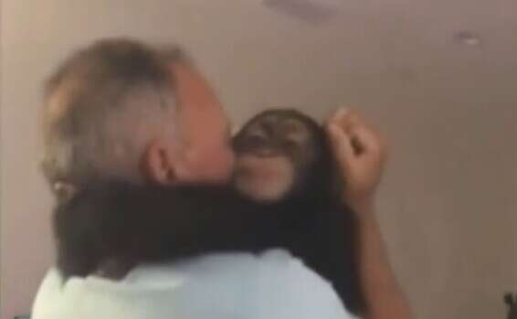 סרטון מכמיר לב שהופץ השבוע ברשתות החברתיות וכלי התקשורת מראה כיצד גור השימפנזים לימביני, מגיב בשמחה גדולה כשהוריו המאמצים האנושיים נכנסים לחדר.
