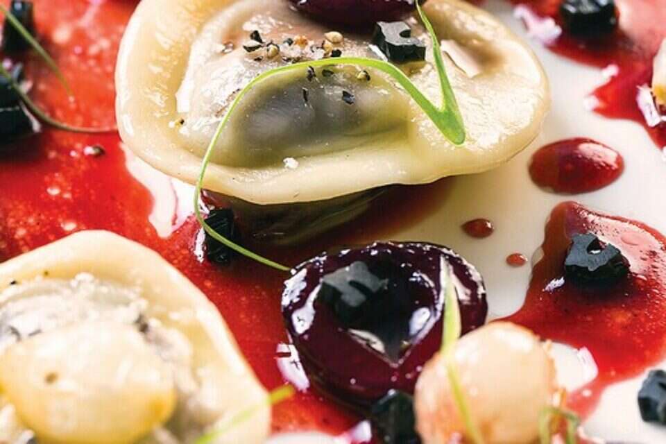 השילוב של אווז, ברווז או מולארד עם דובדבנים הוא קלאסי ומגיע מהמטבחים המזרח־אירופיים. בחרתי להכין סוג של פלמיני עם בשר קונפי שוק אווז, שעובר השריה ואז בישול עדין ואיטי בשומן. את הכיסונים העשירים הללו אני מגיש עם דובדבנים בדבש ובקירש (ברנדי דובדבנים). מובטחת לכם מנה של אושר מזוקק עם שילוב טעמים נכון ומרגש.