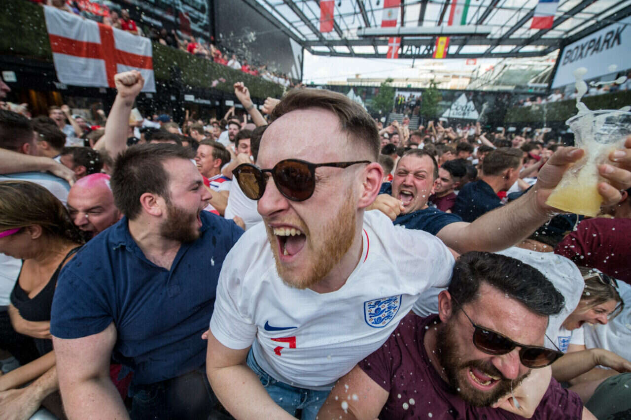 צפו באוהדים האנגלים חוגגים את השער הראשון מול שבדיה