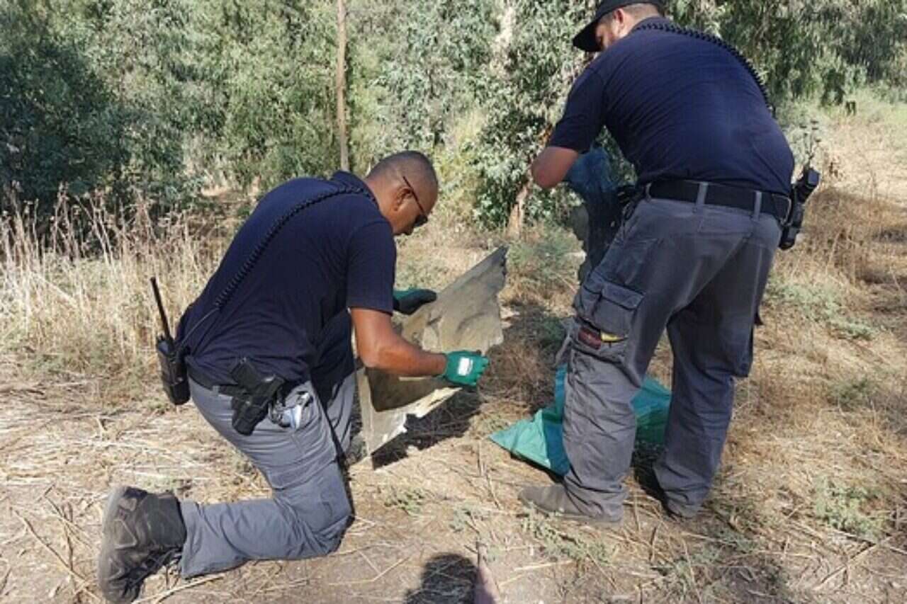 "יורט על ידי סוללת פטריוט באזור צפת". חיפושים אחרי חלקי המל"ט בקיבוץ האון // צילום: גיל אליהו - ג'יני