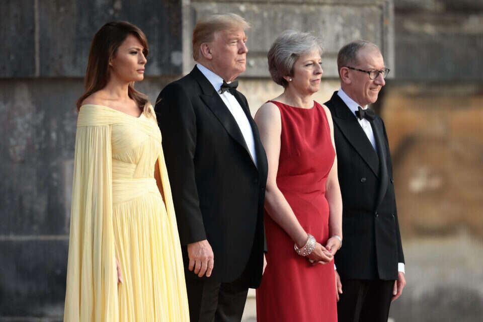 במהלך ארוחת ערב חגיגית לכבוד ביקורו של טראמפ בבריטניה נשאה מיי נאום פייסני בו הציבה בפני הנשיא את האפשרות לחזק את הקשרים הכלכליים בין המדינות.