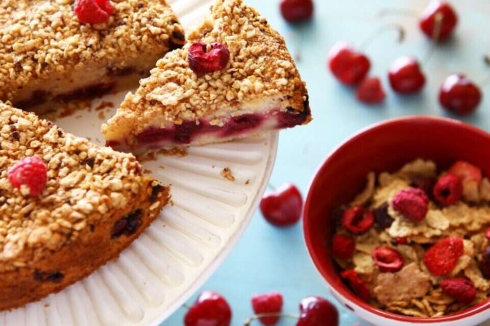 בשעה שבע בבוקר אני פוקחת עיניים, מפילה בכבדות את רגליי מהמיטה ומזדקפת. יום חדש הפציע. אל פינת האוכל שטופת השמש יושבים שני גוזלים בפיג'מות תואמות ואוכלים דגני בוקר בחלב. שלא כמו אחיו הבכור, הנאמן זה חודשים רבים לפתיתי דגנים מלאים משובצים פירות אדומים פריכים, איתמר בן ה-4 נתון להשפעתה של כל אופנה החולפת ומשתנה. פעם יהיו אלה דגנים מרובעים בטעם קינמון עדין ופעם קורנפלקס פשוט וצהוב. קופסאות הקרטון המלבניות והצבעוניות מתרבות והולכות כמחווה לארון ליד המקרר של סיינפלד, גם שם חגג קרנבל של טעמי בוקר. אני מתקשה לשים סוף לתופעה כי גם אני, כמו בני, סקרנית מול השפע וההתחדשות. כששורה עלי רוח ניקיון וסדר אני מחליטה לשים את הדגנים המיותמים באור הזרקורים ולפנות ולו כמה מהם. אלא שסערת עשייה מצטרפת אל החגיגה, ובתוך שעה קלה הקורנפלקס הפשוט הופך לציפוי מלהיב לחזה עוף בתנור, שלל דגנים ואגוזים מתערבבים להם לממתק אנרגטי וטעים וחופן פתיתים מלאים ותפוחים שטעמם פירותי ומרקמם פריך מקשטים בנדיבות עוגה בחושה עונתית. עוגת פירות אדומים החומרים (לתבנית בקוטר 24 ס"מ): • 2 כוסות פירות יער אדומים • 2 כפות קמח לבסיס: • 120 גרם חמאה רכה • 1 כוס סוכר • 2 ביצים • 1/4 2 כוסות קמח • 2 כפיות אבקת אפייה • קמצוץ מלח • 1 גביע (200 גרם) שמנת חמוצה • 3 כפות חלב • 3 כפות ליקר קרם דה קסיס • 2 כוסות דגני בוקר עם פירות אדומים אופן ההכנה: 1. מחממים תנור לחום של 175 מעלות ומשמנים את התבנית. 2. מערבבים בעדינות את הפירות הטריים עם 2 כפות קמח ומניחים בצד. 3. במערבל מזון עם וו גיטרה מערבלים את החמאה עם הסוכר עד שמתקבלת תערובת קרמית וחלקה. 4. מוסיפים ביצה אחת וממשיכים לערבל. מוסיפים את השנייה ומערבלים. 5. בקערה נפרדת מערבבים קמח, אבקת אפייה ומלח. 6. בקערה נפרדת מערבבים שמנת חמוצה, חלב וליקר. 7. מוסיפים לתערובת החמאה את תערובת הקמח והנוזלים לסירוגין ומערבלים רק עד שנוצרת תערובת אחידה. 8. יוצקים לתבנית מחצית מהבלילה, מסדרים את הפירות האדומים ומכסים בבלילה שנותרה. 9. טוחנים את דגני הבוקר ומפזרים מעל העוגה. 10. אופים בתנור במשך כ-40 דקות או עד שקיסם שננעץ במרכז העוגה יוצא עטוף פירורים לחים (אם במהלך האפייה פני העוגה משחימים די הצורך, מניחים מעליהם יריעת נייר אלומיניום). ממתק שקדים החומרים (ל-12 יחידות): • 2 כוסות דגני בוקר ללא תוספות • 3 כפות ממרח שקדים טבעי • 75 גרם חמאה רכה • 50 גרם שוקולד לבן מומס • 1 כוס דגני בוקר עם אגוזים ושקדים אופן ההכנה: 1. טוחנים את דגני הבוקר, מוסיפים ממרח שקדים, חמאה רכה ושוקולד לבן מומס ומצונן מעט. 2. מערבבים היטב ויוצקים לתבנית מלבנית מרופדת ניילון נצמד. 3. מפזרים מלמעלה דגני בוקר עם אגוזים ושקדים ומעבירים למקרר. 4. כשהתערובת מתייצבת חותכים לריבועים או למלבנים ושומרים במקרר. אפשר להכין חטיפים אישיים בתבנית סיליקון בדוגמת מלבנים או עיגולים. חזה עוף בציפוי קורנפלקס החומרים (ל-4 מנות): • 2 חזות עוף מחולקים לשניים (אך לא משוטחים לשניצל) • 4 כפות גדושות חרדל חלק • 5 כפות שמן תירס או חמניות • 3 כפות מיץ לימון • 2 כפות דבש • 4 שיני שום כתוש • 2 כפות פטרוזיליה קצוצה דק • 1/2 1 כוסות קורנפלקס טחון • 1/2 כוס פנקו או פירורי לחם רגילים • קליפת לימון מגוררת מלימון אחד • צ'ילי גרוס לפי הטעם אופן ההכנה: 1. מחממים תנור ל-180 מעלות ומרפדים תבנית בנייר אפייה. 2. מערבבים חרדל, שמן, מיץ לימון, דבש ושום לבלילה אחידה. 3. מושחים את חזות העוף היטב מכל הכיוונים. זורים מעליהם פטרוזיליה קצוצה. 4. מגלגלים בתערובת של קורנפלקס, פנקו, קליפת לימון וצ'ילי. 5. מסדרים בתבנית ואופים במשך כ-20 דקות. פורסים ומגישים.