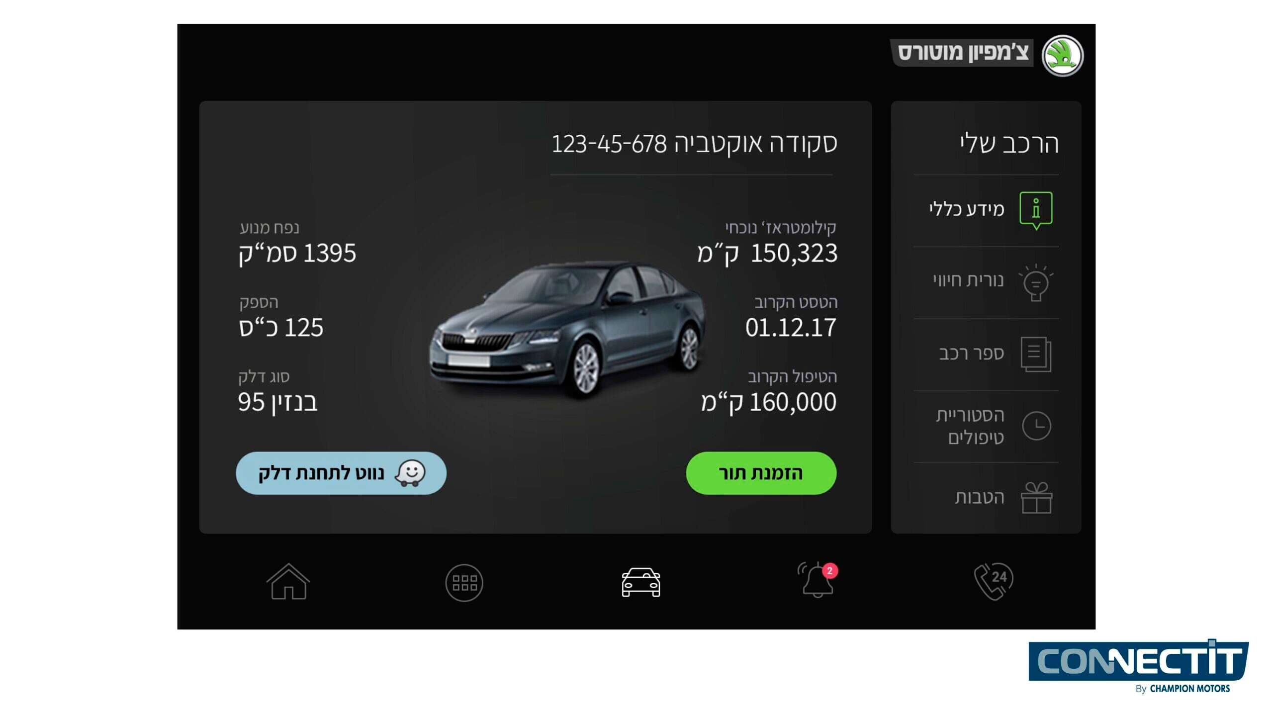 בצד הטכני, המערכת מצוידת במגוון אופציות לניהול אחזקת הרכב: התראות על תקלות שונות, מועדי טיפול, רשימת מוסכים, והזמנת טיפול במוסך. בנוסף, המערכת יודעת להתחבר אל הסמארטפון של הנהג דרך אפליקציה תואמת, ובכך לסנכרן את המידע שבתוכה. עדכוני תוכנה והוספת שירותים חדשים יבוצעו דרך האינטרנט (Over The Air), ללא צורך בחיבור כבלים.