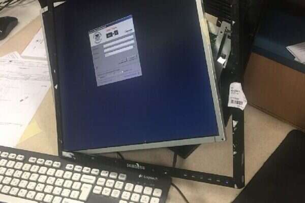 המחשב שנופץ על ראשה של הרופאה // צילום: דוברות איכילוב