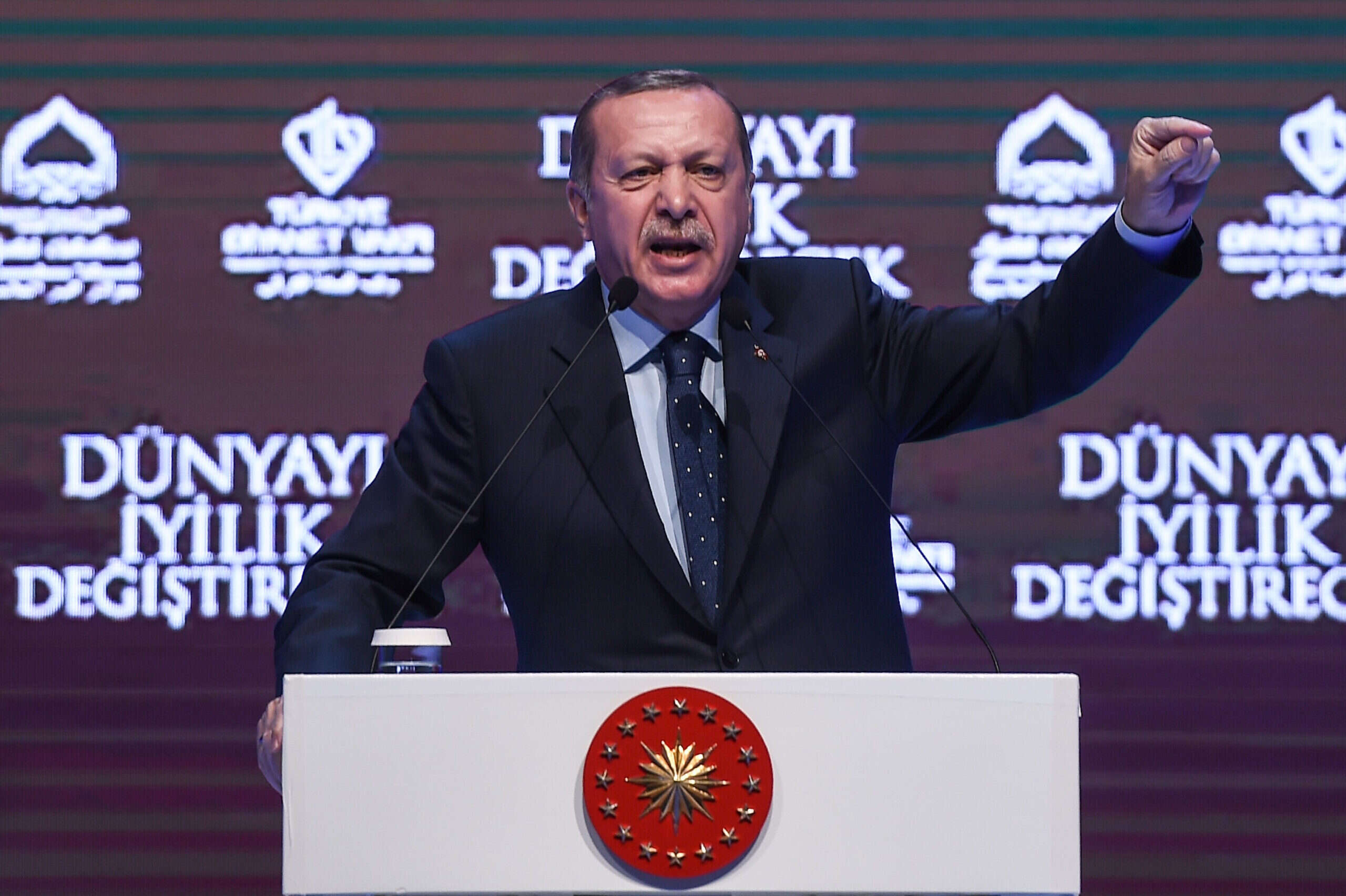 ארדואן מאיים על הולנד בנאום באיסטנבול, מרץ 2017 // צילום: AFP