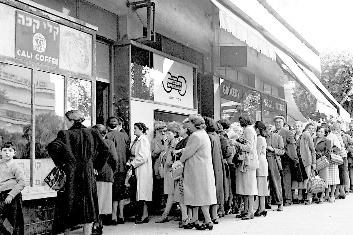 תור לרכישת מזון באמצעות תלושים בת"א של שנות ה-50 // תור לרכישת מזון באמצעות תלושים בת"א של שנות ה-50