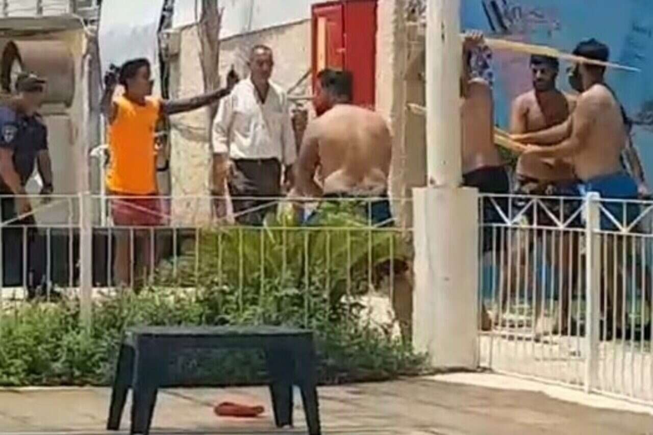 הקטטה תועדה במצלמות כמה מהנופשים האחרים בחוף, ובסרטון נראים המשתתפים בקטטה מכים זה בזה באמצעות קרשים, כיסאות ושולחן פלסטיק.