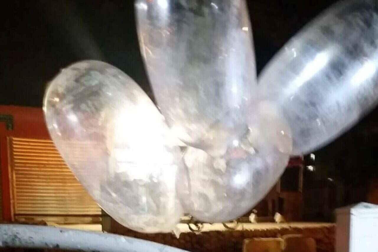 הבלון, כפי שנראה בתמונה, הוא למעשה מספר בלונים המחוברים למה שנראה כחומר דליק, והוא אותר ברחוב רינגלבלום בעיר. כוחות משטרה הוזעקו למקום על ידי אזרחים מודאגים, סגרו את הרחוב והרחיקו סדרנים.