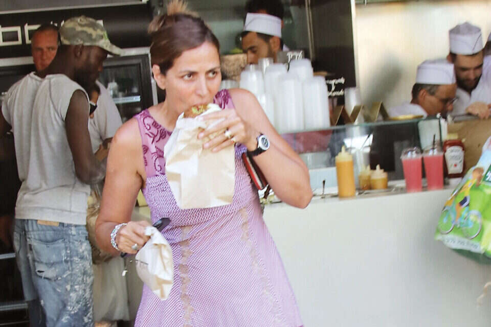 √ והאישה והבלונד אניטה פללי חלטרה השבוע כמוליכת כלבים בדרום תל אביב.