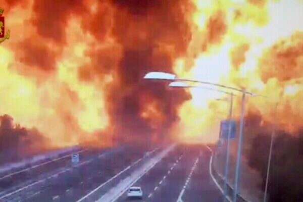 משאית נושאת מכוניות התנגשה במכלית דלק על כביש מהיר ליד שדה התעופה של בולוניה, בצפון איטליה. כתוצאה מההתנגשות התלקחה מכלית הדלק בכדור אש ענק, והציתה את המשאית השנייה. הגשר עליו נסעו המשאיות התמוטט בחלקו, והאש התפשטה גם למכוניות שחנו במגרש חניה מתחת לגשר.