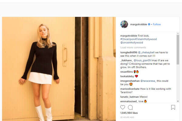 השחקנית מרגו רובי, שתגלם את דמותה של שרון טייט בסרטו החדש של טרנטינו, העלתה תמונה ראשונה לאינסטגרם של דמותה • בסרט המסקרן, "היו זמנים בהוליווד", שייצא ביולי 2019, משחקים גם ליאונרדו די קפריו ובראד פיט