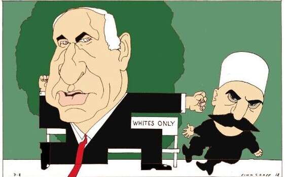 הקריקטורה שהופיעה בעיתון הציגה את ראש הממשלה ,בנימין נתניהו, כשגופו מאויר בצורת צלב קרס, חובט בחבר המיעוט הדרוזי הישראלי על ספסל שעליו כתוב “לבנים בלבד”.