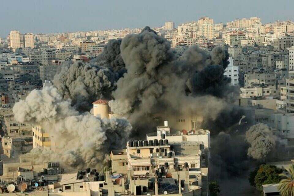 לכל תקיפה פוטנציאל קטלני, הפצצת בניין בעזה אתמול // צילום: AP