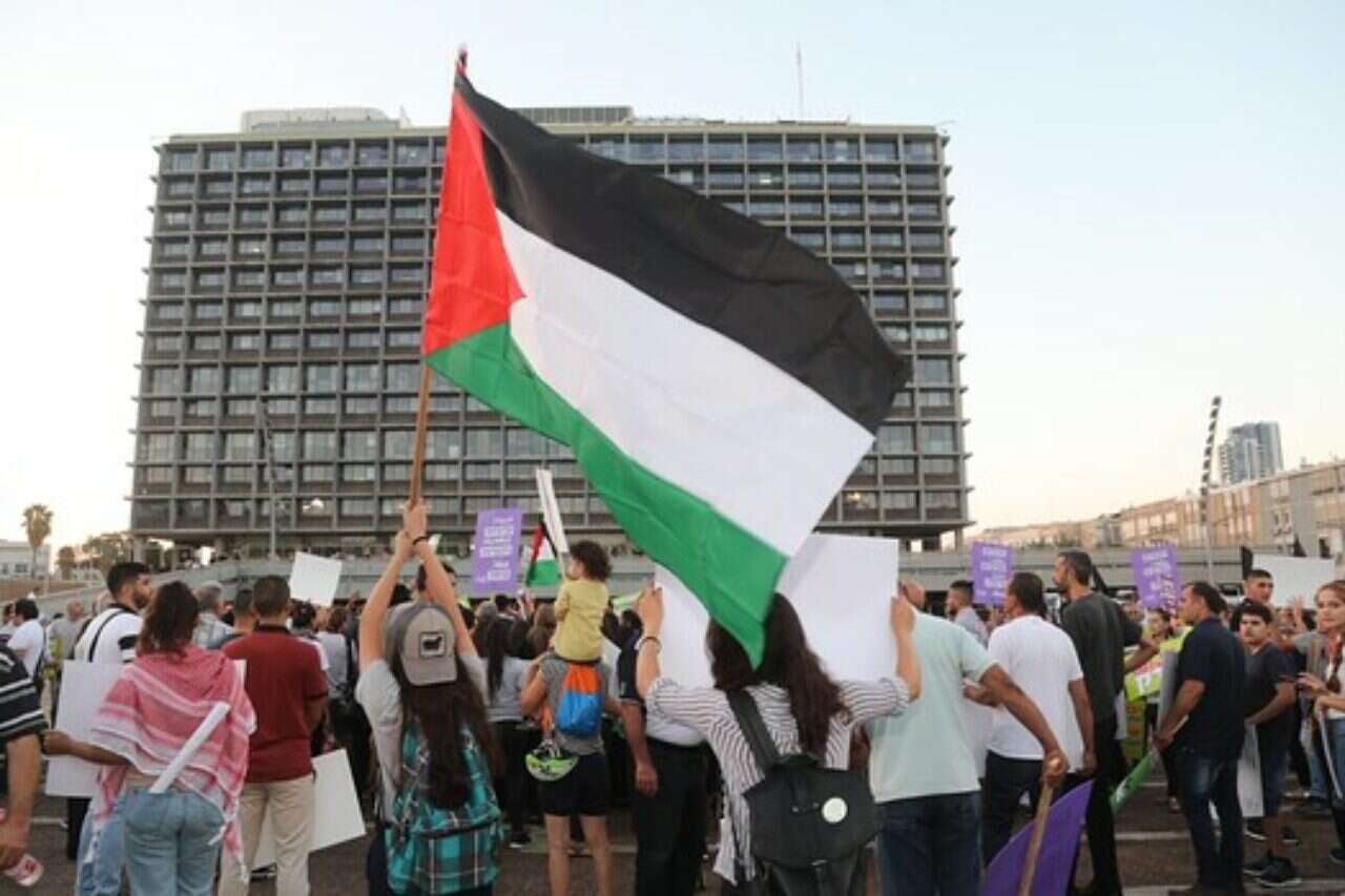 מפגינים מניפים דגלים פלשתינים בתל אביב // צילום: גדעון מרקוביץ'