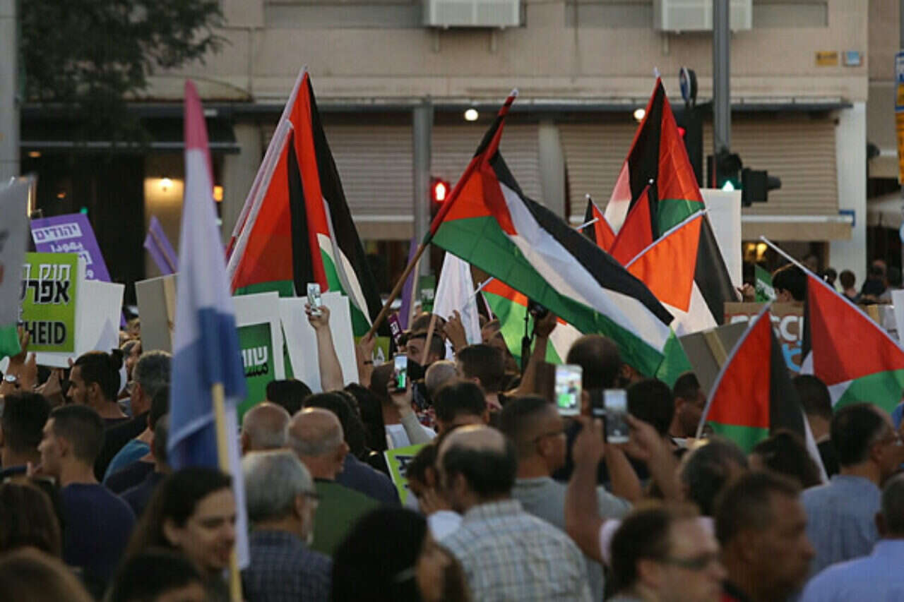 צודקת היתה בקשת ההתחשבות שצצה אתמול בתחילת ההפגנה, שלא להניף דגלי פלשתין. פלשתין זה שם, על ההר. שם אמורה לקום לשיטתם של המפגינים מדינת פלשתין, ללא נוכחות יהודית. לא קולקטיבית ולא פרטנית. כאן, לחוף ימים, זה ישראל. כאן לשיטתם של מארגני ההפגנה צריכה להיות מדינה דו־לאומית, שתחיה בשלום לצידה של מדינת הלאום הפלשתינית, ההיא מההר. המפגינים יכלו להסתפק בהסכמה למחוק את המגן דוד מהדגל. להשאירו דגל לבן ושני פסים. על צבע הפסים עוד אפשר יהיה לדון בעתיד.