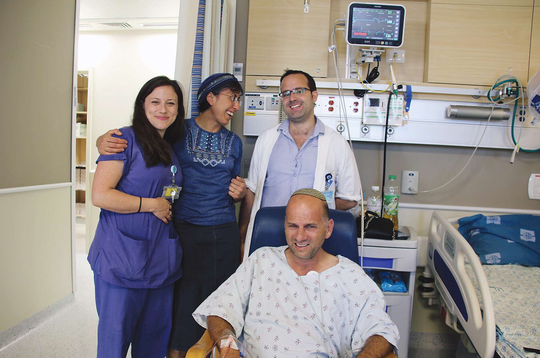 האמבולנס הגיע במהירות וחבר בירושלים לאמבולנס טיפול נמרץ, שהמשיך בדרכו להדסה עין כרם. הכוננים כבר יידעו את הצוות הנוירולוגי. עם הגעתו הוכנס מייד לבדיקת סי.טי ומשם לחדר הצנתורים לידי הצוות בראשות פרופ' חוסה כהן, נוירוכירורג מומחה וראש היחידה לצנתורי מוח וצוואר. "מי שקיבל אותנו היה ד"ר בני אוליאל, שנותר קר רוח ומקצועי עם כל המהומה שהיינו בה, ולא שכח גם לעטוף את המשפחה. הוא הסביר את ההליכים והמצב, מה עתידים לעשות והיה אנושי ביותר. מי שלקחה אותי תחת חסותה היתה טליה גזלה, אחות המיון שקיבלה אותנו. היא לא משה מאיתנו ואפילו חיבקה אותי כאשר ראתה באיזו מצוקה אני נתונה. בדבר כזה עוד לא נתקלתי", סיפרה ציפי בהתרגשות, "אחרי הצנתור יצא אלינו פרופ' כהן והראה מה היה ומה עשה והסביר מה הלאה".