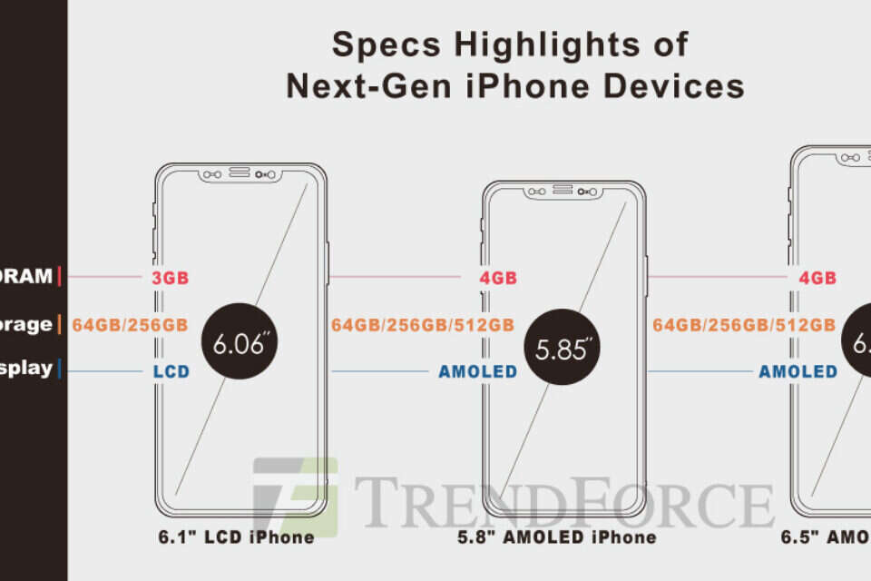 בסתיו הקרוב תכריז חברת אפל על האייפון החדש שלה, ועל פי הערכות אנליסטים של אתר TrendForce, הוא יתמוך בעט החרט החכם של החברה, וב-512 גיגהבייט של אחסון פנימי. מבחינת המסך נראה כי מכשירי ה- iPhone החדשים יכללו שתי גרסאות AMOLED, בגודל של 5.8 אינץ 'ו- 6.5 אינץ', וכן גירסה פחות יקרה של 6.1 אינץ' עם מסך LCD.