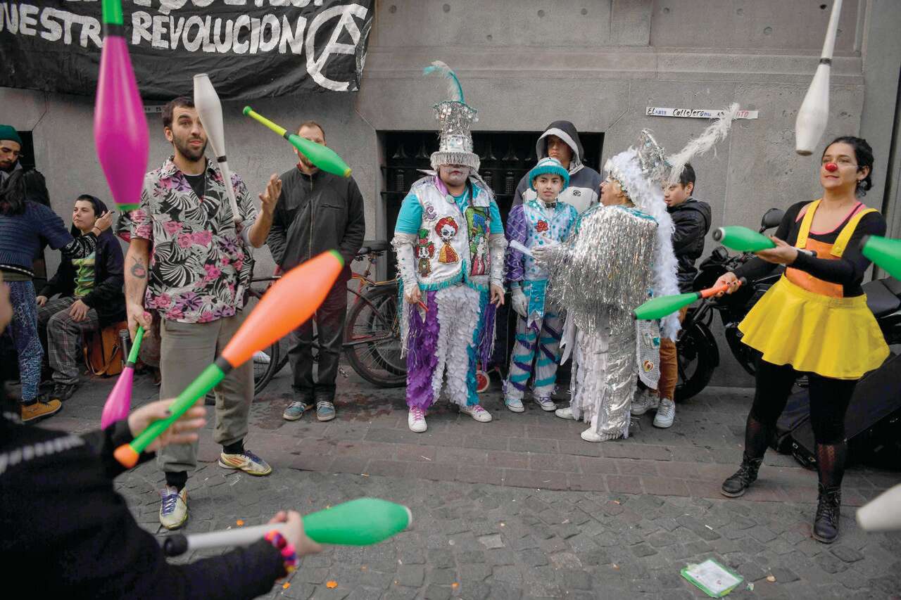 צילום: אי.אף.פי // אימה שחורגת מהריאליזם. אמני רחוב מפגינים בבואנוס איירס על אי־הסדרת מעמדם בחוק