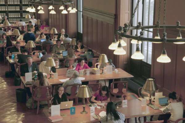 הלאומית, אירועים שגרתיים ויומיומיים בחיי הספרייה: סטודנטים מביטים בסריקות של פרסומות משנות ה־50; מוקדנים עונים לשיחות של קוראים המתעניינים בכותרים מסוימים ("אדוני, חד־קרן הוא יצור מדומיין, זו לא חיה שהתקיימה במציאות"); הרצאת ערב שעוסקת בעבדות (הפנים המגוונות של הניו־יורקרים בקהל מספקות רגע טעון חברתית); או שעת שיעורי בית של תלמידי בית ספר יסודי בברונקס.