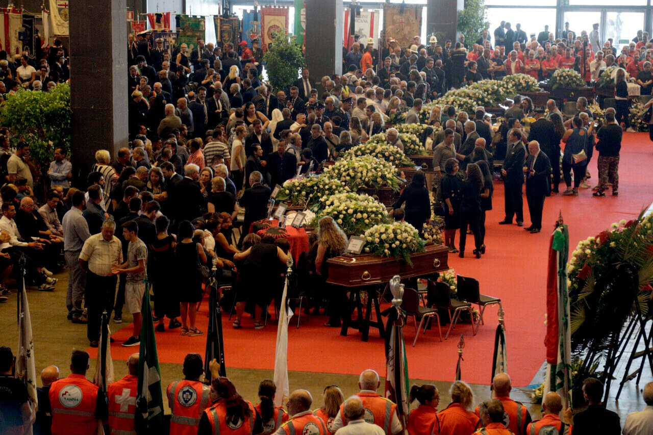 בתוך סערה של ביקורת ציבורית יצאו היום ההלוויות הממלכתיות של מספר הרוגים באסון בהשתתפות ראש ממשלת איטליה, ג'וזפה קונטה.