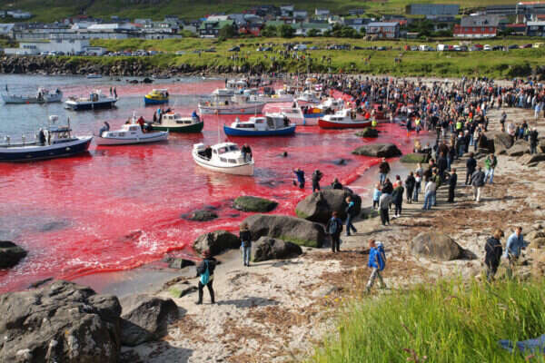 תמונות של הרג המוני של לווייתנים על ידי ציידים באיי פארו, הנמצאים 300 קילומטרים מסקוטלנד, מעוררים זעם בקרב פעילי זכויות בעלי חיים ושוחרי איכות הסביבה.