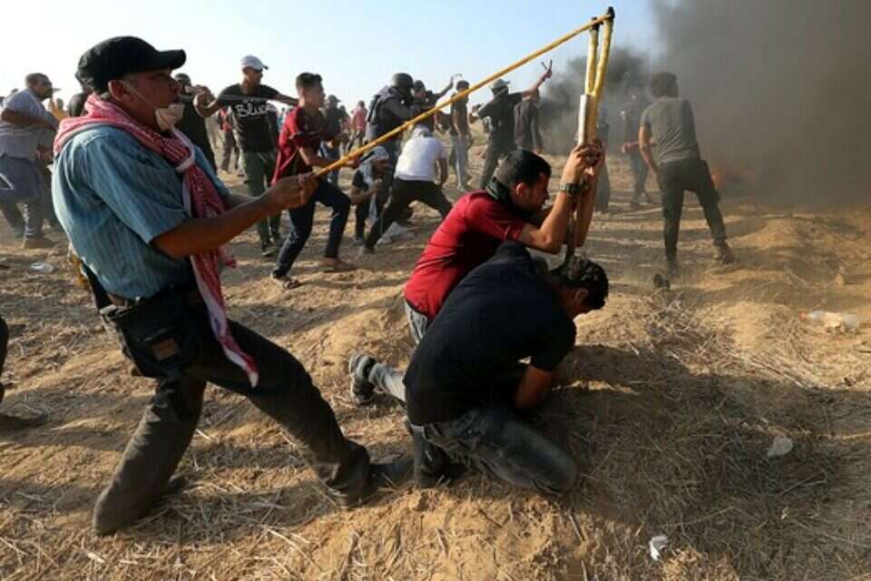 הפלשתינים ממשיכים עם "צעדות השיבה". התפרעויות בגבול עזה, היום // צילום: רויטרס