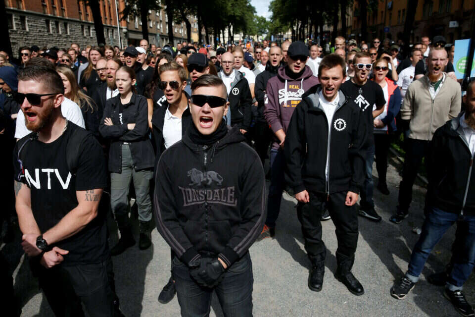 כך מתכוננת התנועה הניאו נאצית לבחיאות הכלליות הראשונות שלה: כ-300 ניאו-נאצים המשתייכים ל"תנועת ההתנגדות הנורדית" (NMR) בשבדיה הפגינו היום (שבת) בבירה שטוקהולם. בין היתר, לצד קריאות ושלטים כנגד המהגרים צעדו המפגינים כשהם מצדיעים במועל יד.