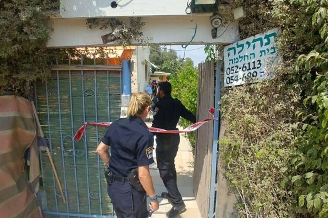 הכניסה לזירת הרצח בבית המחסה בנתניה // צילום: שמואל בוכריס