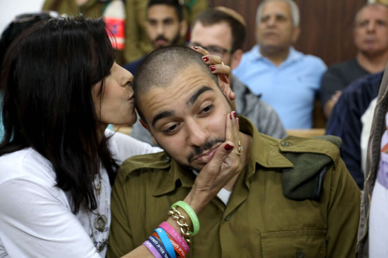 אלאור אזריה בבית הדין הצבאי עם אמו // צילום ארכיון: גדעון מרקוביץ'
