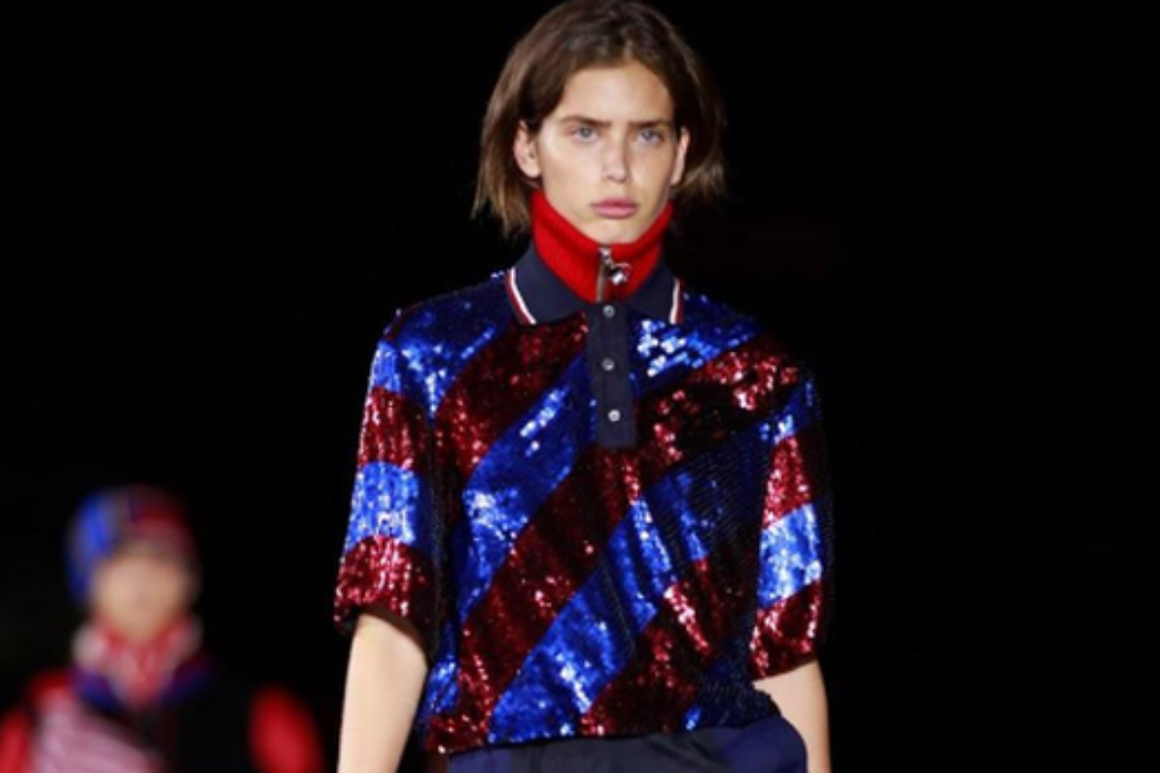 היילי בולדווין בתצוגה של טומי הילפיגר בשנגחאי חורף 2018-19 // צילום: יח"צ חו"ל