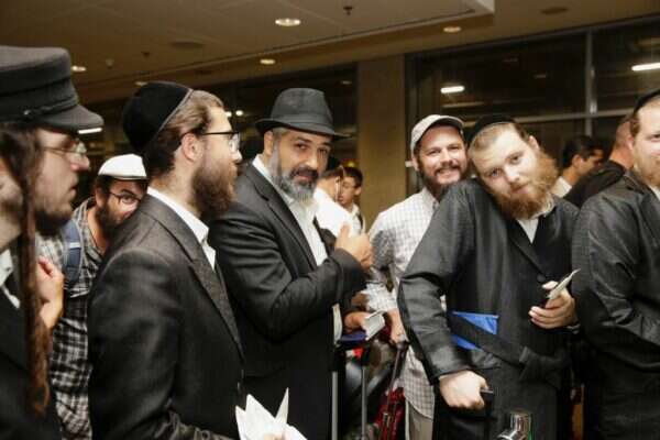 הפרשן הבכיר יחד עם אלפי מאמינים בנתב"ג // צילום: יהודה פרץ
