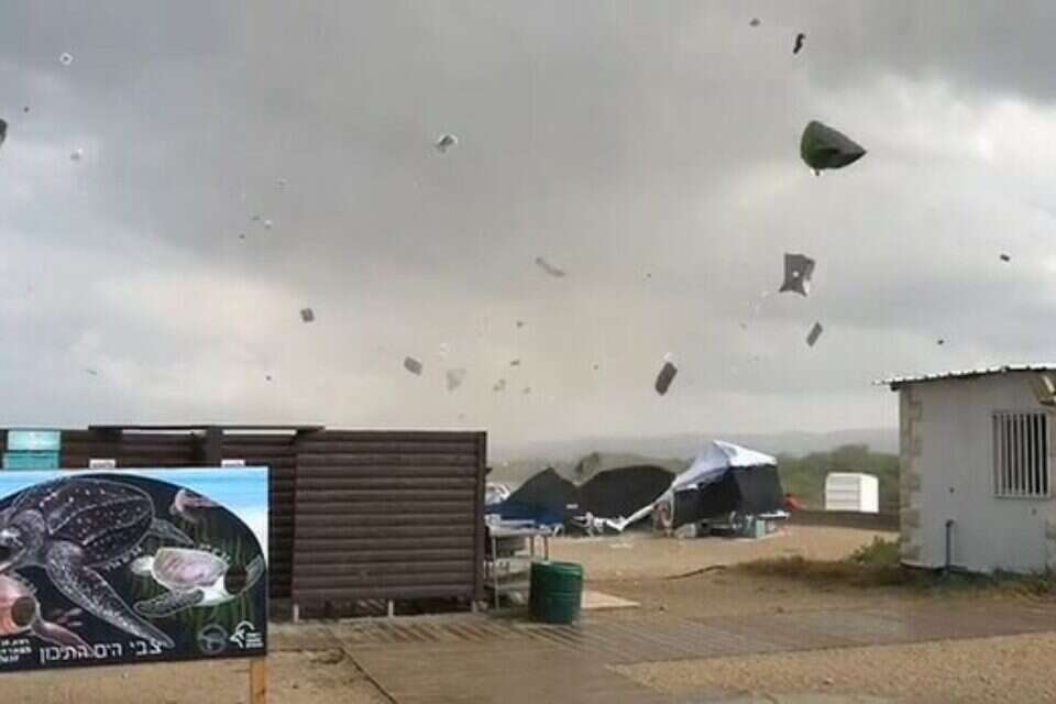 הנופשים שהגיעו לבלות את סוף השבוע ואת ראש השנה בגן הלאומי חוף הבונים הופתעו מעצמת סופת הרוחות שפקדה את החוף והעיפה לגובה רב את הציוד שהביאו עימם. אוהלים, מזרני ים וציוד קמפינג התעופף מעל לראשי הנופשים במשך דקות ארוכות.