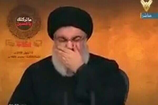 מזכ"ל חיזבאללה חסן נסראללה פרץ בבכי במהלך נאום טעון אמוציות שנשא והועבר בשידור ישיר לאלפים מתומכי התנועה ברובע הדאחיה בדרום ביירות.