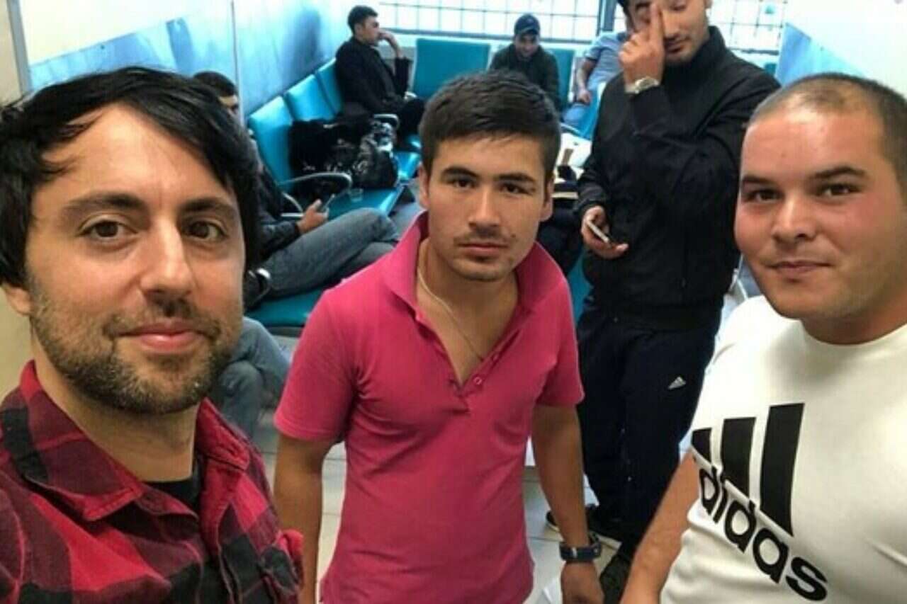 בן חורין (משמאל) ושותפיו לתא המעצר במוסקבה // צילום: יותם בן חורין