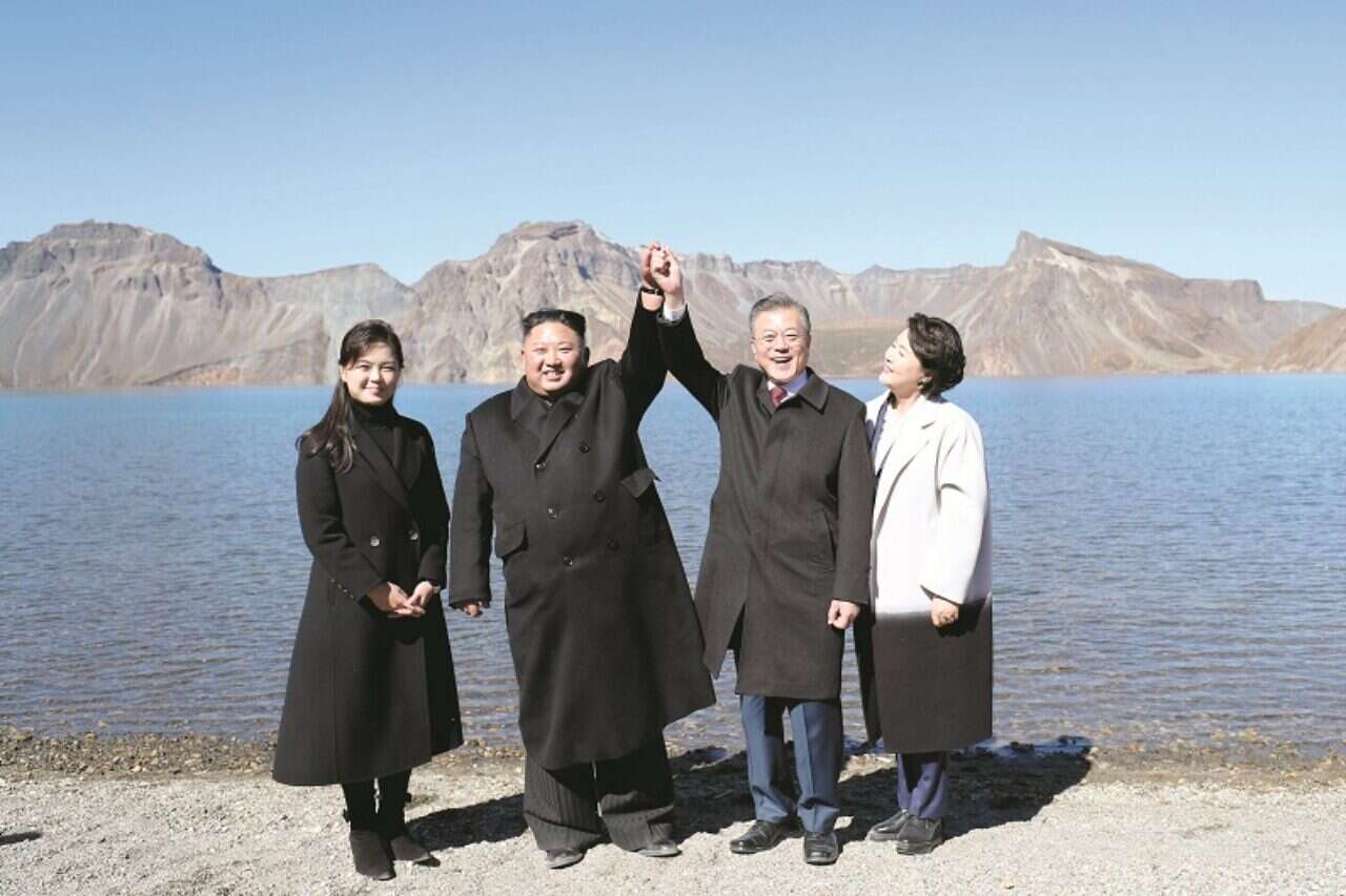 היום (חמישי) היה יומה השלישי של הפסגה ושני המנהיגים ניצלו את מזג האוויר הטוב כדי לעלות על ההר שנחשב למקום קדוש עבור שני המדינות, הר פאקטו, הגבוה ביותר בחצי האי. שם על פי המיתולוגיה הקוריאנית נולד אבי האומה הקוריאנית המשותפת, דנגון, לפני יותר מ־4,000 שנה. בפסגה קים ומון הניפו ידיים ביחד, והצטלמו עם נשותיהן.