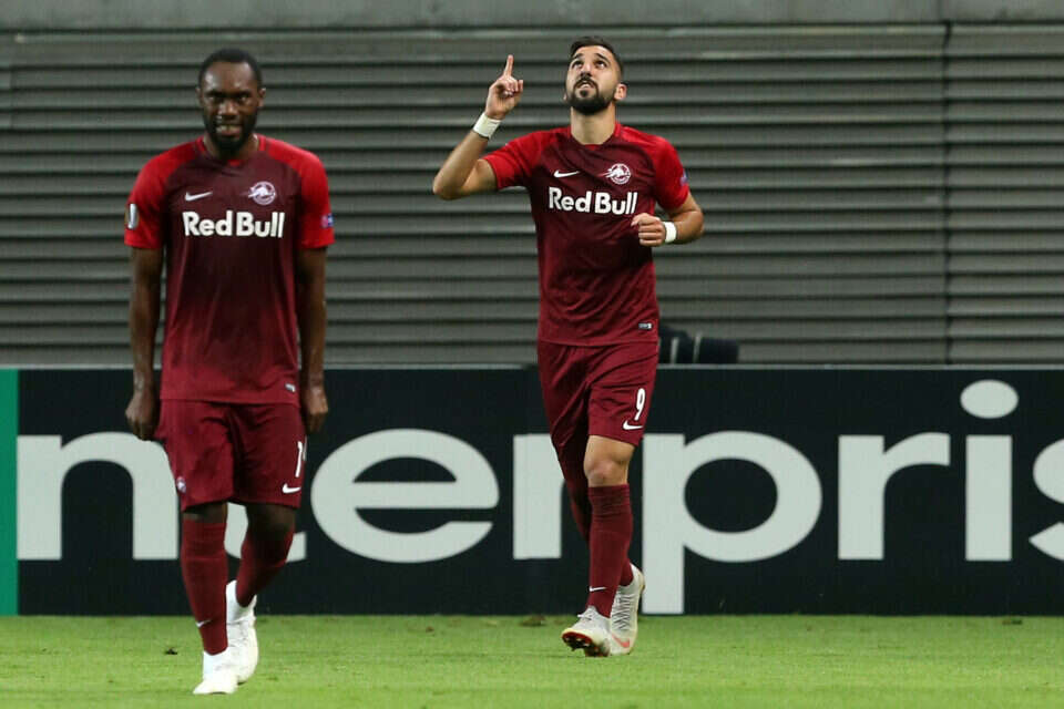 דאבור נוגח את הראשון של זלצבורג, הערב בדרבי של רד בול // צילום: גטי אימג'ס