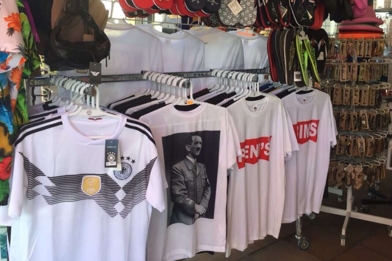בגרמניה, סמלים נאציים של תקופת הרייך השלישי הם דבר שאסור להציג או למכור. עם זאת, ספרדי שטייל לאחרונה בחוף פלמה שבאי הספרדי מיורקה, ראה שבחנות אביזרי אופנה מוכרים חולצה עם התמונה של הרודן אדולף היטלר.