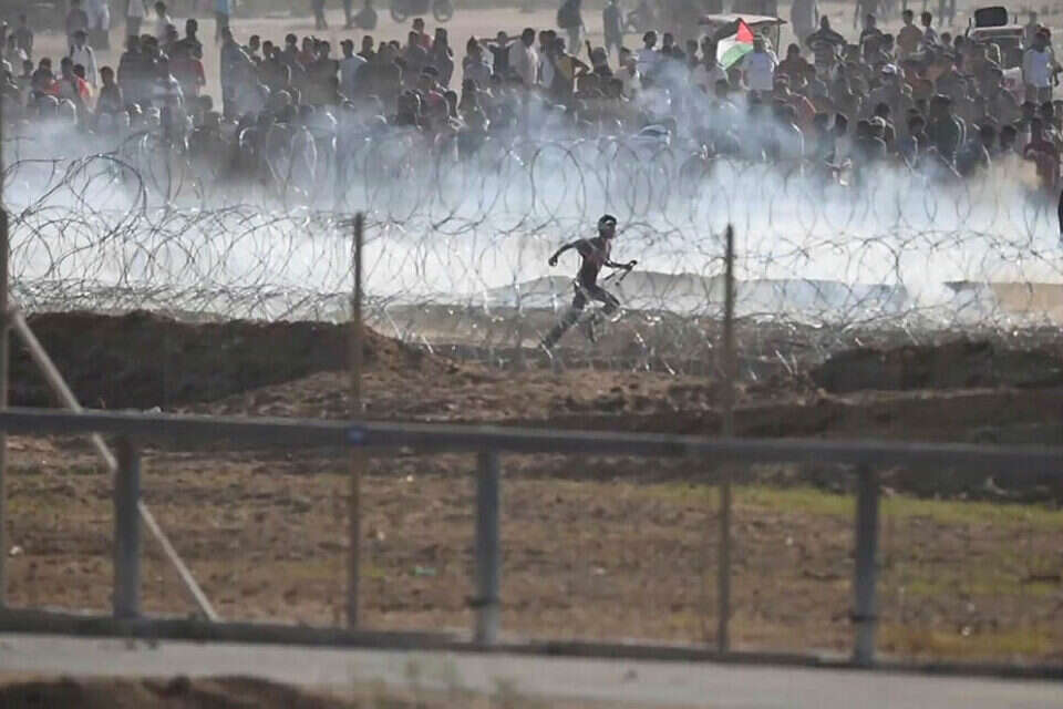 חמאס ינסה להציף את שדה הקרב באזרחים. עימותים בקרבת הגדר // צילום: AP