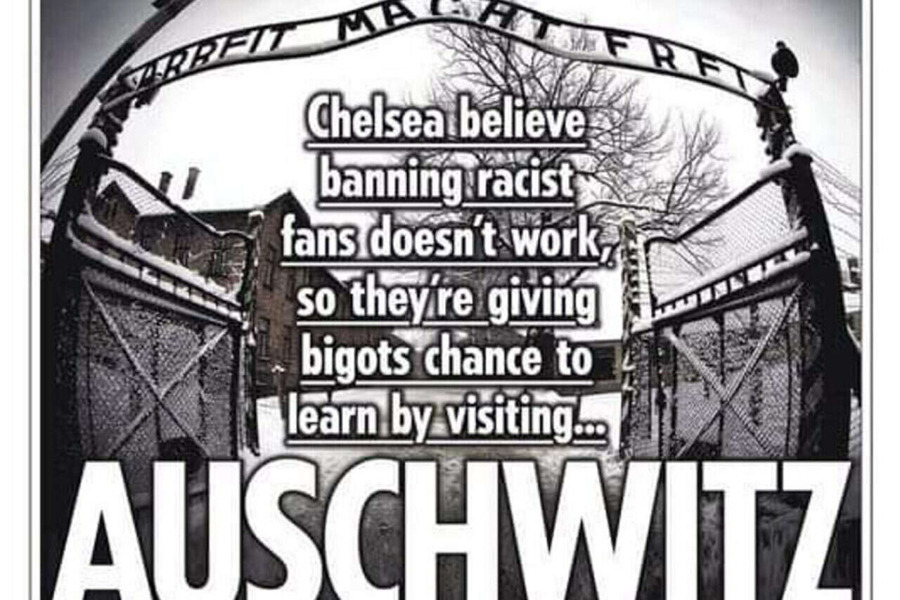 צ'לסי ממשיכה להילחם בגזענות ובאנטישמיות במגרשים, הפעם בדרכים קצת יותר מקוריות. ראשי המועדון החליטו בשבוע האחרון "לחנך" את האוהדים הגזעניים ולשלוח אותם לסיורים לימודיים במחנה ההשמדה אושוויץ. ע"פ הדיווח ב'סאן' האנגלי, הבעלים רומן אברמוביץ' מאס באנטישמיות הגואה ביציעי סטמפורד ברידג', אך במקביל החליט לתת לאוהדים הסוררים הזדמנות שנייה.