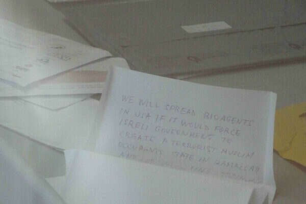ארבעה בני משפחה בביתר עילית חשו ברע לאחר פתיחת מעטפה ופונו היום (ראשון) לביה"ח שערי צדק במצב קל. במעטפה היה חומר בלתי מזוהה שפגע באם, בבתה בת ה-20, בנער כבן 17 ובילד כבן שבע.