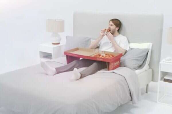 המצאה גאונית: פיצה בוסטון בקנדה עלו על פטנט ששווה זהב • אריזת פיצה שמתאימה לאכילה במיטה עם הוראות הרכבה