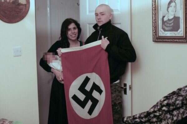 הצעיר, בן 22, החליט להעניק לבנו את השם מעורר החלחלה "אדולף היטלר. בני הזוג נראים כשהם מצולמים לצד דגל המפלגה הנאצית.