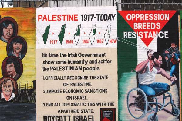 "אמנות הקירות" הזו היא אחת האטרקציות התיירותיות החשובות בבירת צפון אירלנד. ההזדהות המוחלטת של התנועה הלאומית האירית עם ארגוני הטרור הפלשתיניים מקבלת ביטוי שגובל בהסתה לאלימות מצידם של אמני הקיר הקתולים. ב