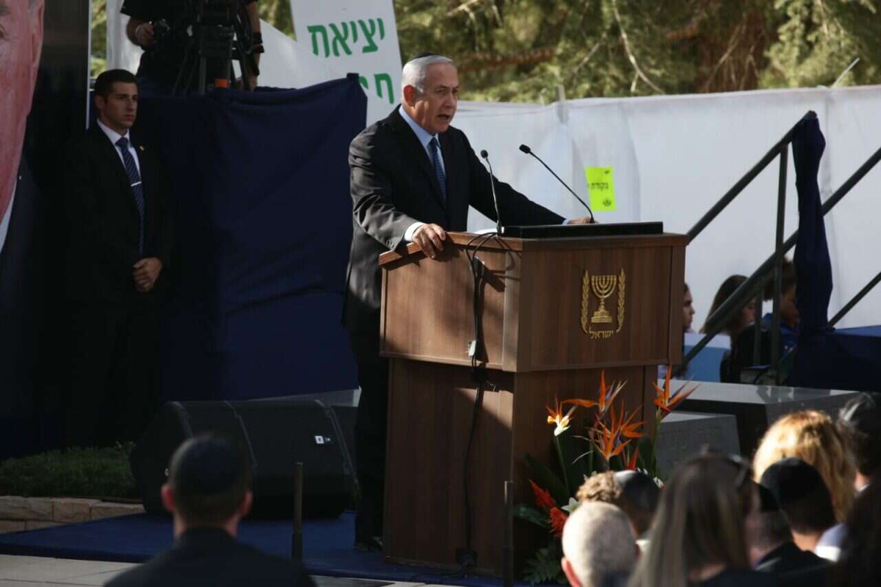 "הרצח - מעשה אלימות מתועב". נתניהו בטקס האזכרה הממלכתי לרבין // צילום: אסתי דזיובוב / TPS
